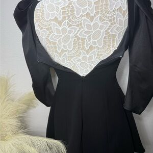 This stunning black dress features a flattering sweetheart neckline and elegant puff long sleeves, perfect for a cocktail night out. The fit and flare style accentuates the figure, offering a chic and sophisticated look.