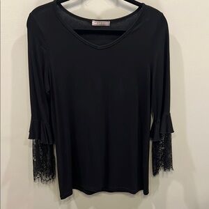 This chic black blouse showcases a fitted design with elegant ruffled details, adding a touch of sophistication to your wardrobe. Its tailored fit ensures a flattering silhouette, making it a versatile choice for both casual and formal occasions. Crafted from a comfortable fabric, it promises ease of wear throughout the day.