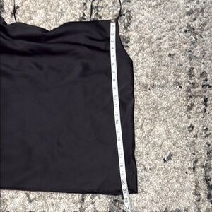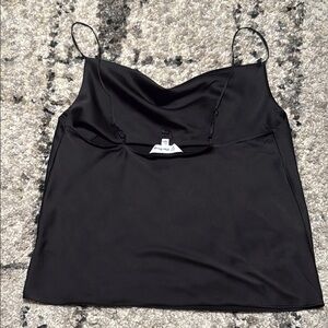 This sleek black camisole top features a fitted silhouette and a sleeveless design, perfect for a polished and sophisticated look. The smooth fabric offers a comfortable fit, making it a versatile addition to any wardrobe. It’s like a silky material very soft and it’s NWOT