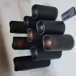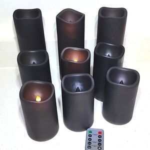 Black Flameless Pillar Candles With Remote. New in box. 9 Pieces