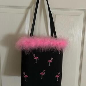 Flamingo Bag, Y2K Tote Bag, Feather Trim Bag, Pink and Black Purse, Novelty Tote Bag, Retro 2000s Bag, Vacation Purse, Flamingo Print Handbag, Statement Tote, Fun Summer Bag