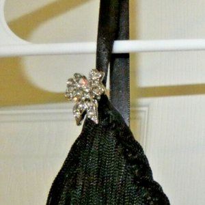 The straps were in bad shape when I got it so I cut them off and sewed on new black ribbon for new straps. At the front of each strap I sewed a rhinestone button in the shape of a butterfly. Giving it the look of 2 butterflies landing on the dress.