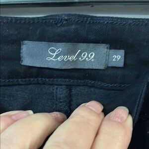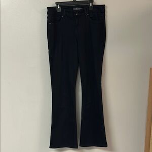 These black jeans feature a stylish flare and wide leg design, offering a modern twist on a classic look. Crafted from smooth denim, they provide a sleek and polished appearance. Perfect for adding a touch of elegance to any outfit.