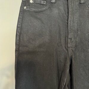 Chic black flare jeans with a touch of sparkle. Perfect for stylish outings. Comfortable fit.