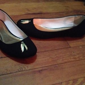 These flats have a soft texture with pretty gold feathers for a little pop of color and maybe match those cute new earrings you just bought. Only worn once for a couple of hours, without any flaws.