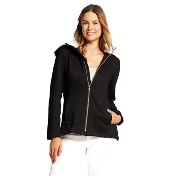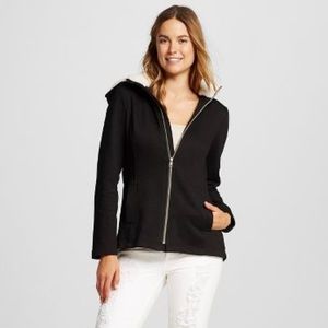 Merona Black zip up hooded sweater - lined with white soft fluffy fleece - New with tags