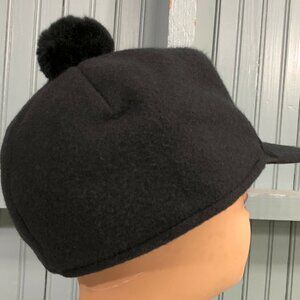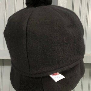 Black Fleece Hunting Trapper Pom Made In USA Ear Flaps 7 3/8 Langenberg Hat Cap