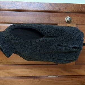 Stay warm and stylish with this dark gray fleece vest. Perfect for layering, it offers comfort and versatility for any occasion. Front zip, high collar, zip pockets.