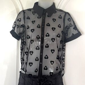 Black Flocked Planchette Sheer Girls Button-Up. Size XS New Hot Topic