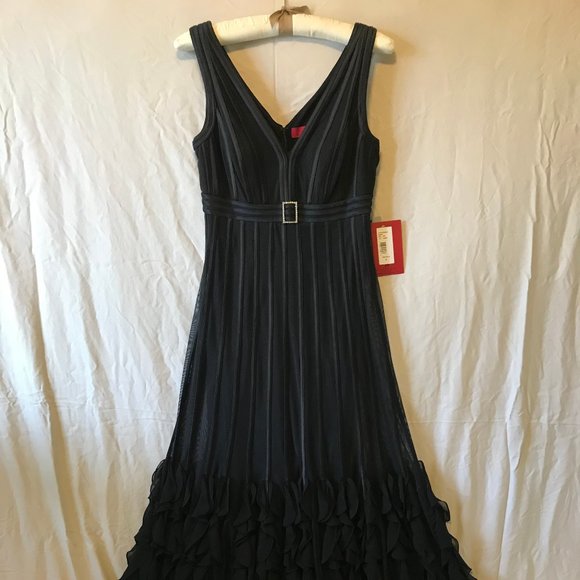 Gorgeous, floor-length black dress with flowing ruffle detail at the bottom. Purchased for Mardi Gras ball but never worn with tags still on!