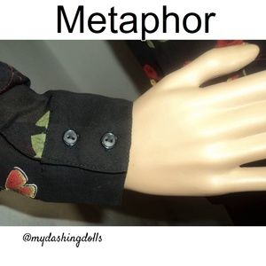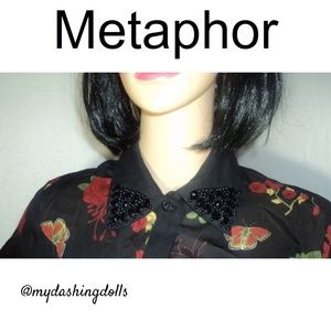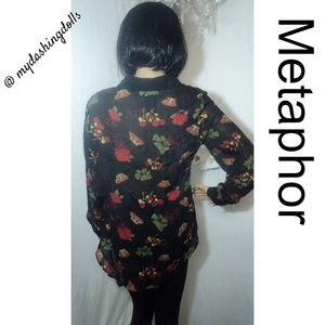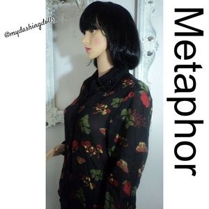 Beautiful, thin black button up shirt with stunning floral design for casual wear!