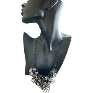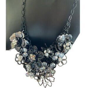 Black Floral Crystal Statement Necklace Adjustable Chain Lobster Clasp Closure