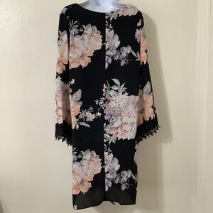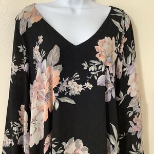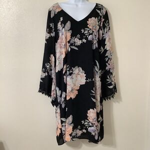 Black Floral Dark Cottagecore Witchy Whimsigoth Peasant Boho Midi Dress 1X