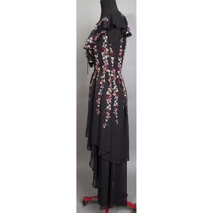 Black & Floral Design High Low Maxi Dress / Chiffon/ LC/ Lauren Conrad