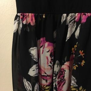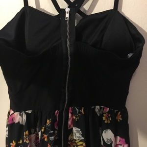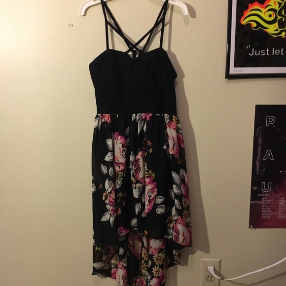 Spaghetti strapped dress with a black top and a floral high-low skirt. Zips in the back. Only worn once!!!