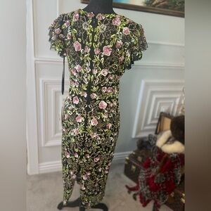 Black Floral Embellished Flutter Cap Sleeve Dress