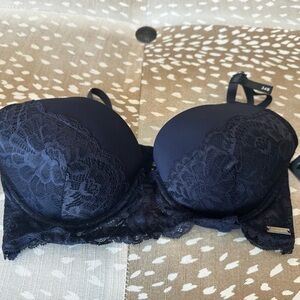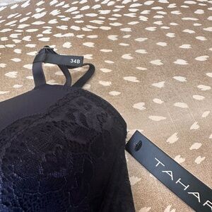 This black bra features a stunning floral embossed pattern on the cups, offering both elegance and practicality. Designed with padded cups and underwire support, it ensures a comfortable fit. The adjustable shoulder straps and lace trim add a touch of sophistication to this intimate essential.