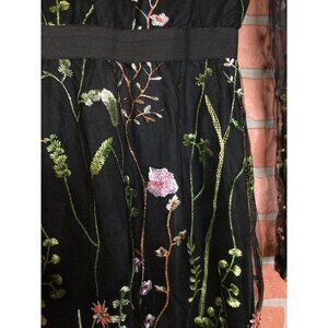 Black Floral Embroidered Dress Size M Long Mesh Sleeves Whimsigoth Fairygrunge