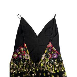 Black Floral Embroidered Maxi Dress With Spaghetti Straps & V-Neckline