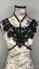 Elegant black floral lace harness top. Perfect for layering or as a statement piece.