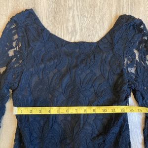 Black Floral Lace Long Sleeve Mini Dress Size X Small Lined Target Cotton Blend