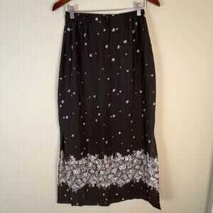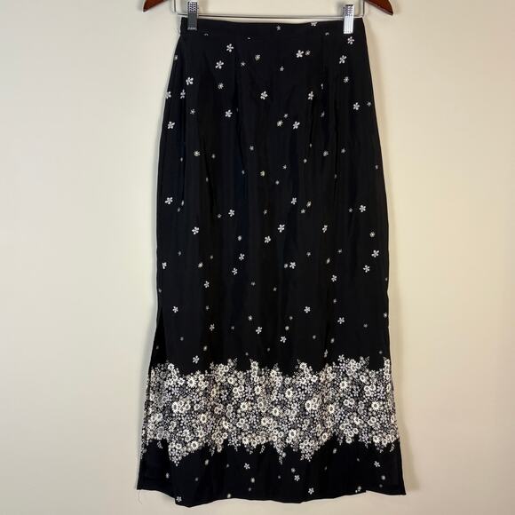 Black Floral Maxi Skirt Vintage Rikki J New York Size Medium Whimsygoth