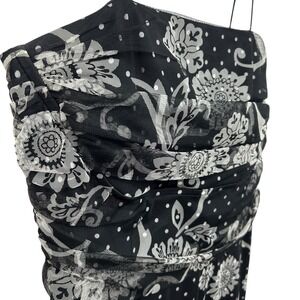Black Floral Mesh Ruched Cocktail Dress Glam Holiday Party Romantic 14W