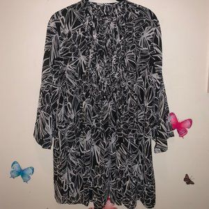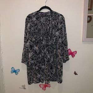 The Tara Top is a great addition to your wardrobe. The flowy, swing silhouette is punctuated with a pleated front and back, and a notch neckline accented with pretty zig-zag stitching. Lightweight, 3/4 roll-tab sleeves.