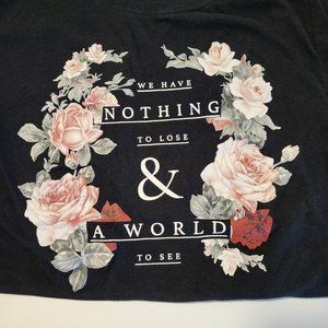 "Nothing to Lose & a World to See" imprinted and surrounded by floral design