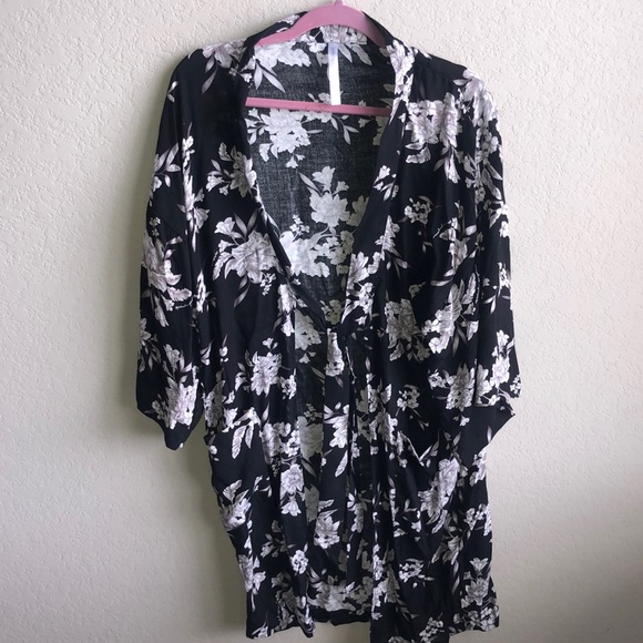Never worn, brand new. Super cute, but I have too many robes. Ties in the front and had pockets on both sides. Lightweight and fun! Perfect for getting ready.