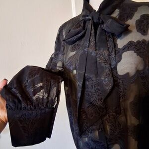 Black Floral Sheer Bow-Tie Blouse -Size M -TP59