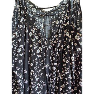 Black Floral Spaghetti Strap Mini Dress With Lace Trim L