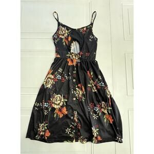 Black Floral Spaghetti Strap Open Front Button Down Sleeveless Mini Dress Size S