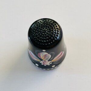 Black Floral Thimble Vintage Ceramic Hand Painted Flower Western Germany Gift