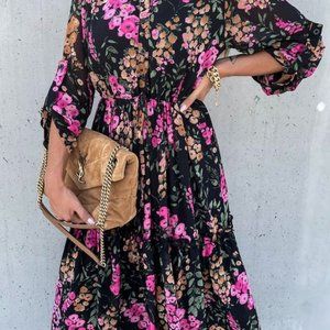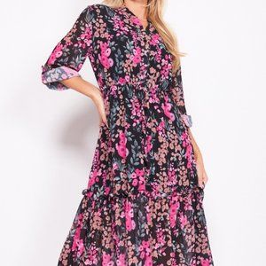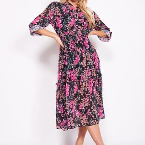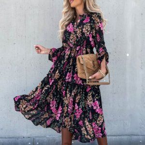 This tiered midi dress featuring floral print & tie waist is guaranteed to get heads turning for all the right reasons. Style with some knee high boots & accessories to complete the look!