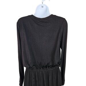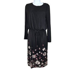 Black Floral Womens Midi Dress With Drawstring Waist Size Med Career Dinner