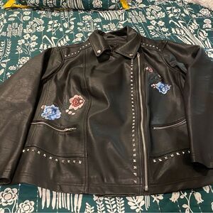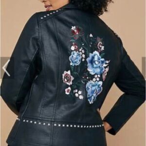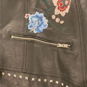 This stylish black leather jacket features beautiful floral embroidery, adding a touch of elegance to your wardrobe. Perfect for any occasion, it combines classic design with modern flair.