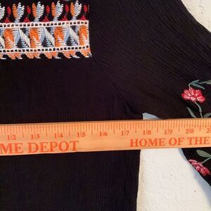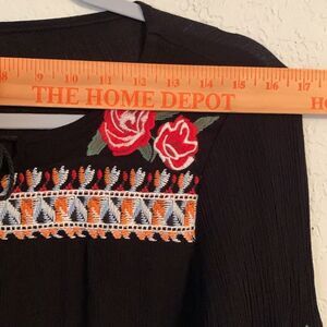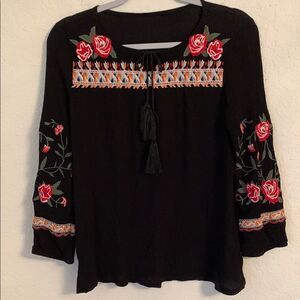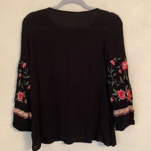 Black Floral Embroidered Long Sleeve Women's Top Size S