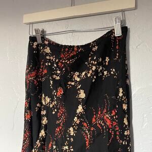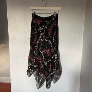 Black floral midi skirt with orange accents moody floral fae nymph handkerchief hem