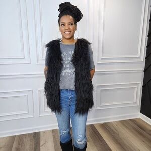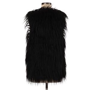 Add a touch of glam to your look with this fluffy black faux fur vest. The soft and cozy material will keep you warm while making a statement. The optional single-clasp closure offers a customizable fit, and the convenient pockets add practicality to this stylish piece. Layer over your favorite top or dress for a chic and trendy look.