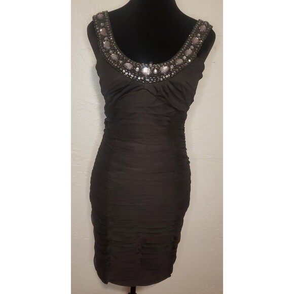 Great pre-owned condition. Minimal signs of wear. A few beads are loose. 100% Polyester. Has some stretch. Back zip closure. Great little black dress for any occasion!