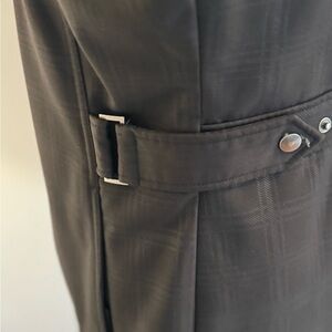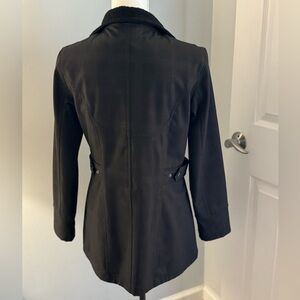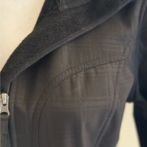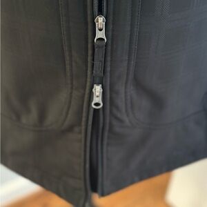 Excellent all around jacket. Dress it up or down. It has a subtle plaid imprint. Jacket is lined with fleece, cozy! Outer layer is water repellent. Falls just below touche for extra warmth. 2 way zipper. Very good pre-owned condition