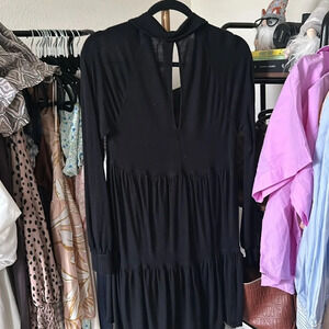 Free People Dress Women's Xs Black Tiered Mini Rayon Linen Long Sleeve Free People Dress Women's Xs Black Tiered Mini Rayon. looks like cooper photo on