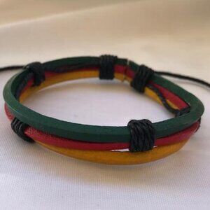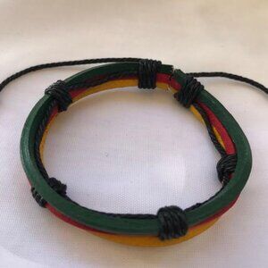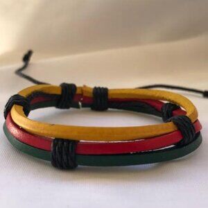 Black Freedom & Unity Braided Leather Handmade Bracelet Adjustable Wristband