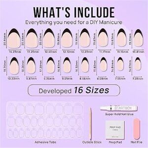 Each set comes with 16 nail sizes for a custom fit, along with everything you need: a storage box, nail glue, adhesive tabs, a double-sided nail file, a cuticle stick, and a prep pad.