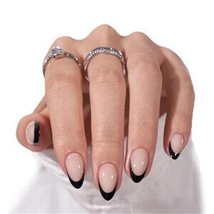Black French Tip Almond Press On Nails