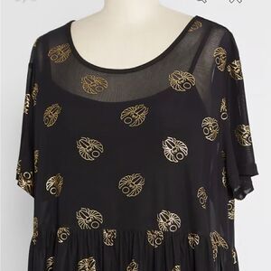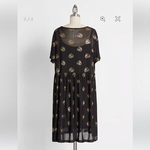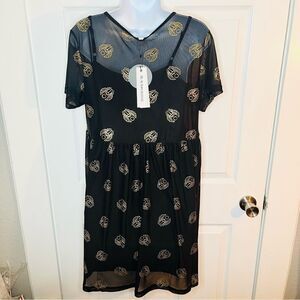 Black Friday Totally Buggin' Babydoll Dress Mesh Black Metallic Bug Print XS NWT