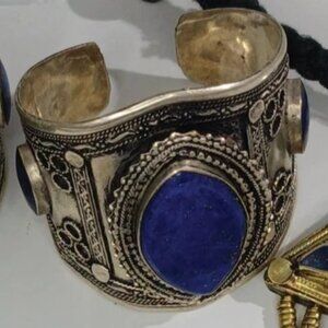 Cuff Bracelet: A stunning complement, crafted with matching stones and intricate etching, offering adjustable comfort and a handcrafted aesthetic.