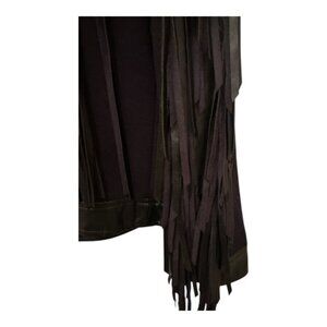 - Sleek black jacket with dramatic fringe detailing on sleeves, front and back