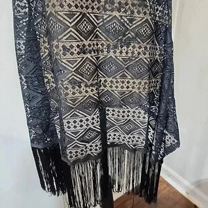 Black Fringe Open Knit Cardigan. Size Medium excellent preworn condition A-12